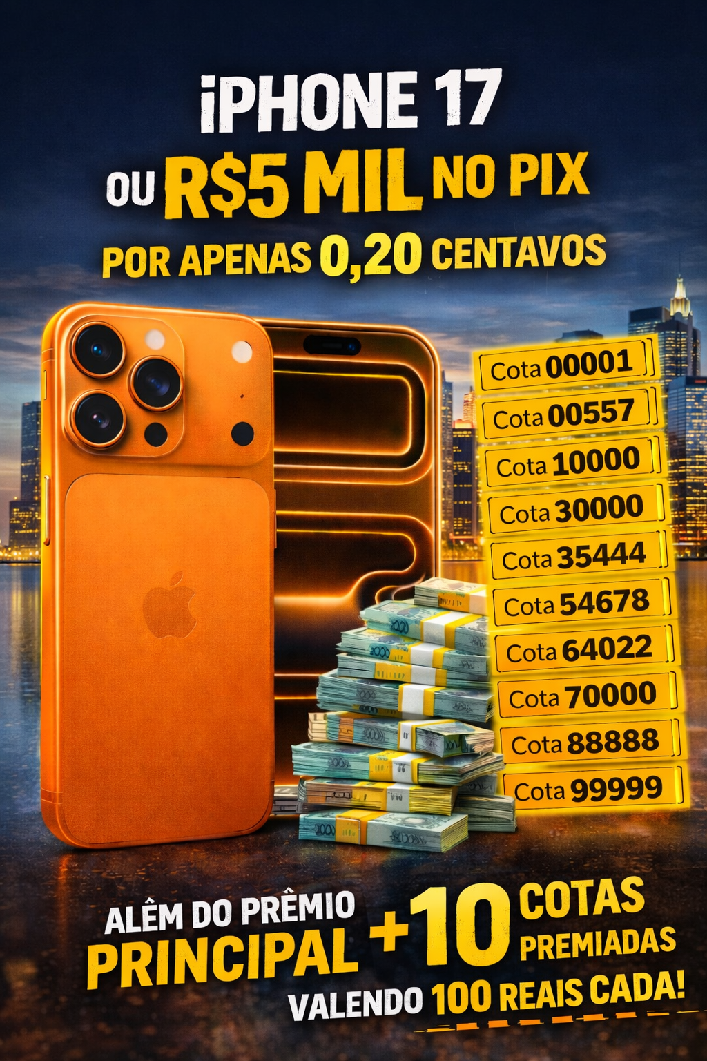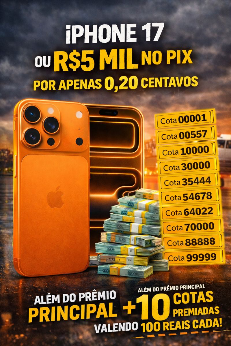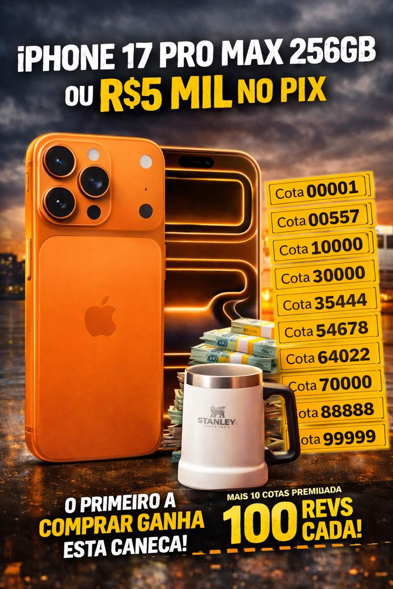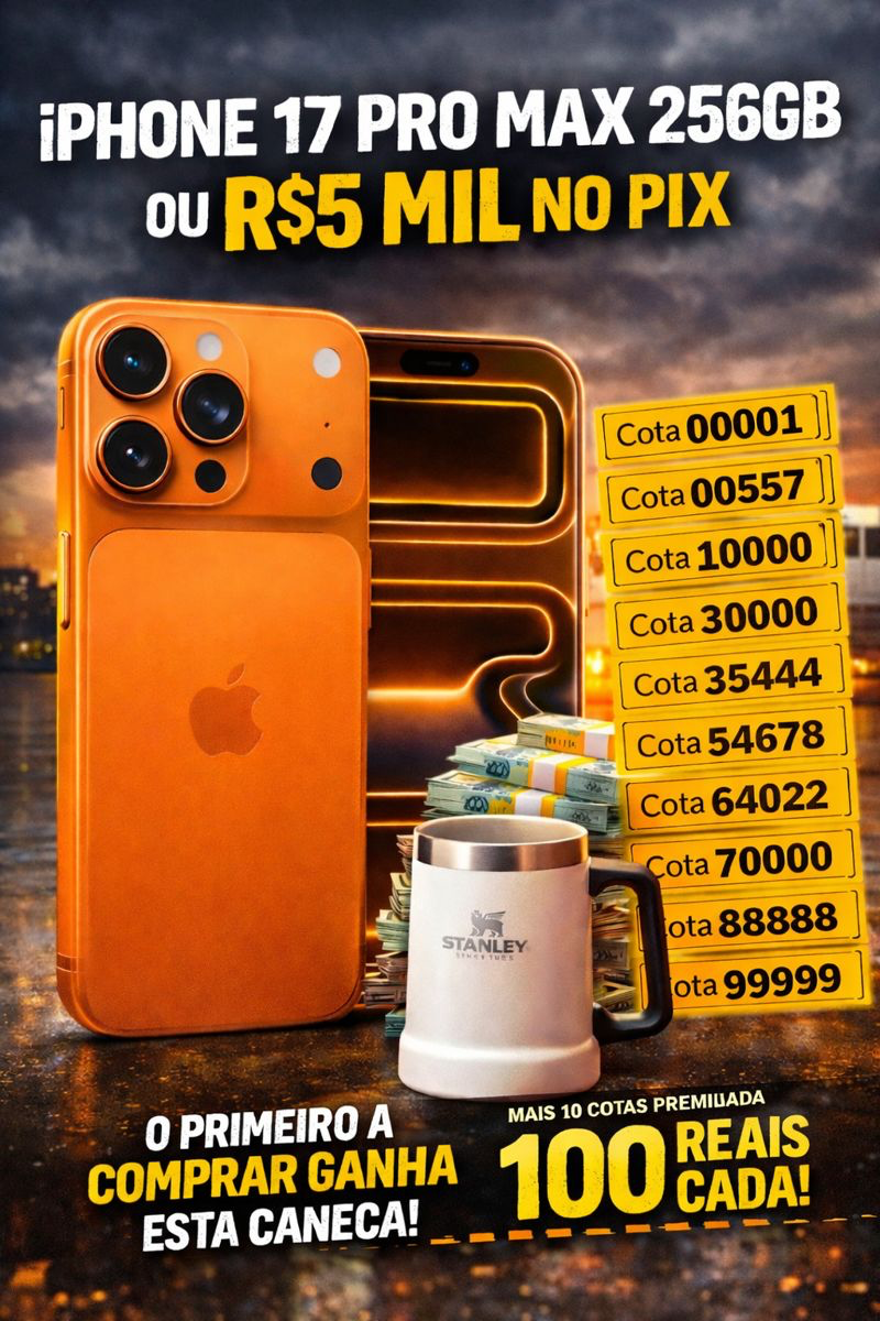 Participe agora e concorra a um iPhone 17 Pro Max 256GB novinho ou R$5.000 direto no seu PIX!